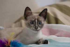 Es una gatita muy dulce, tiene unos cuatro meses y medio, es muy juguetona y dulce.