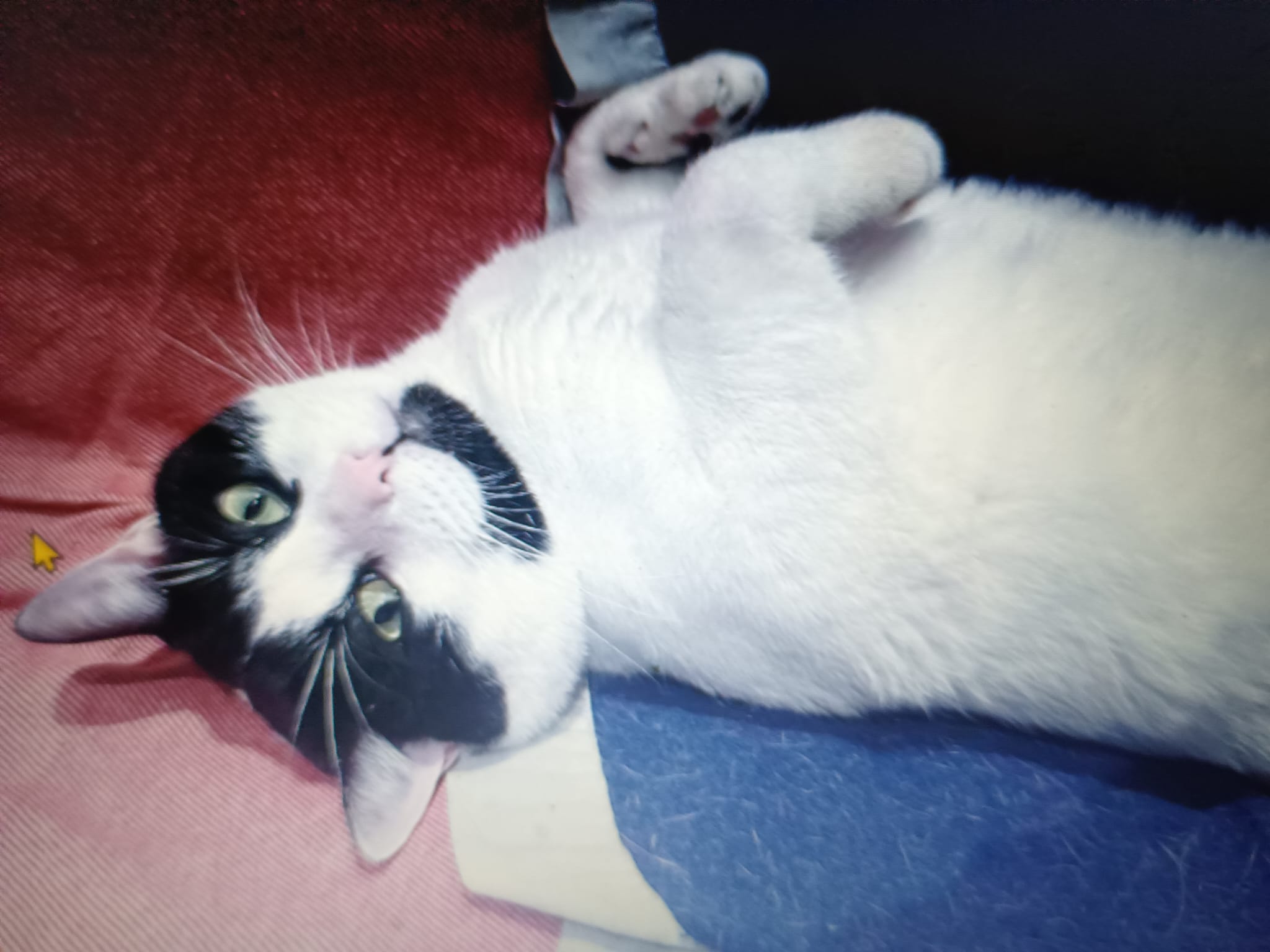 Se adapta muy bien a los cambios, es muy charlatán y le encanta la comida y las chuches gatunas.No saca nunca las zarpas ni araña.