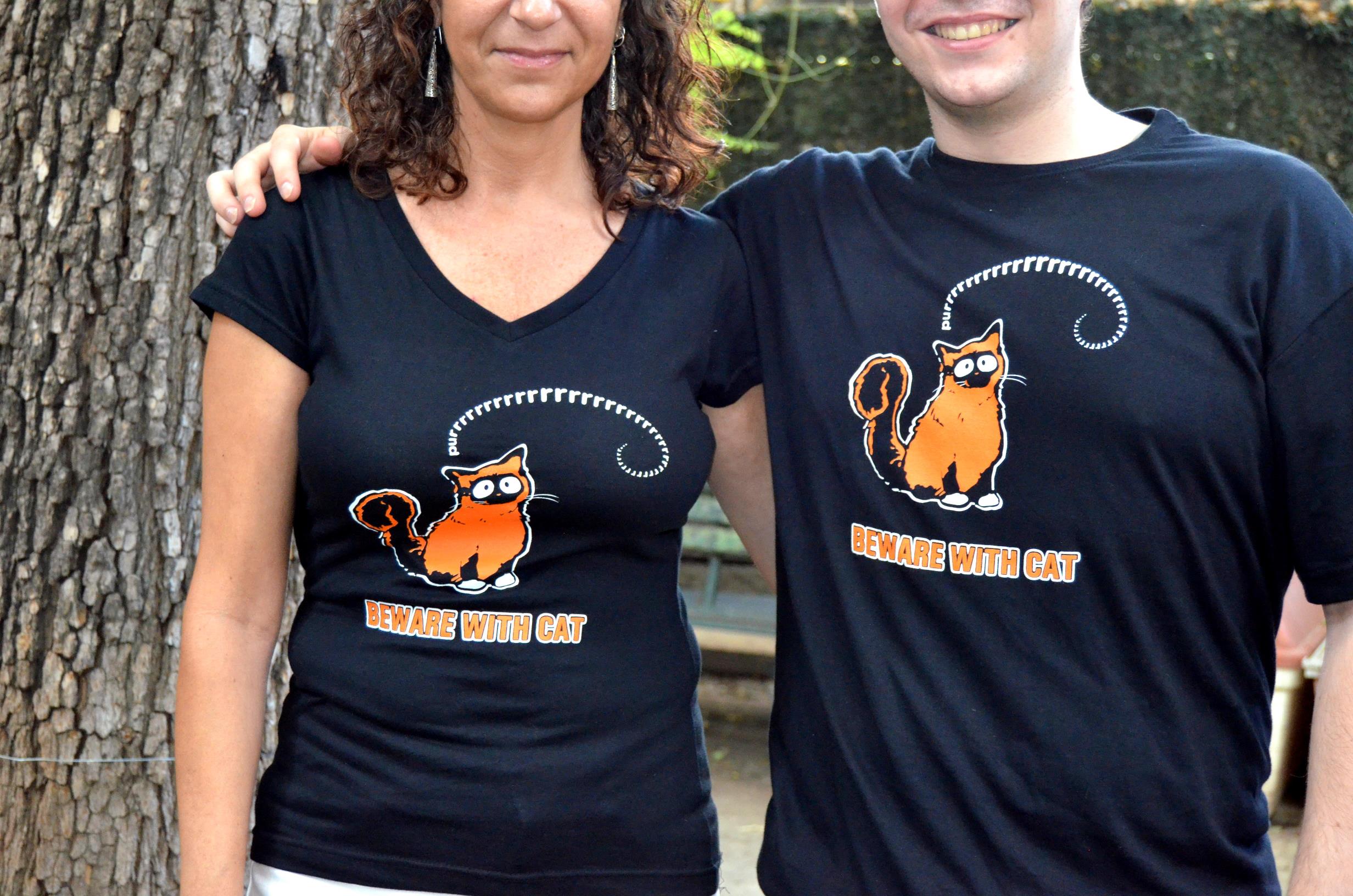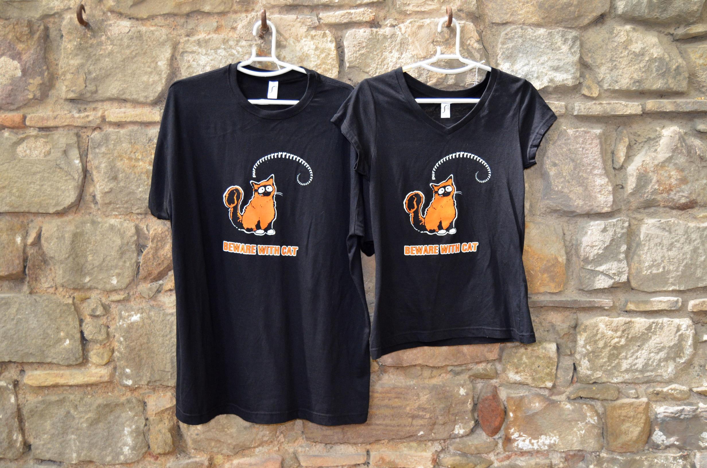 Samarreta negra de màniga curta amb el lema Beware with cats.