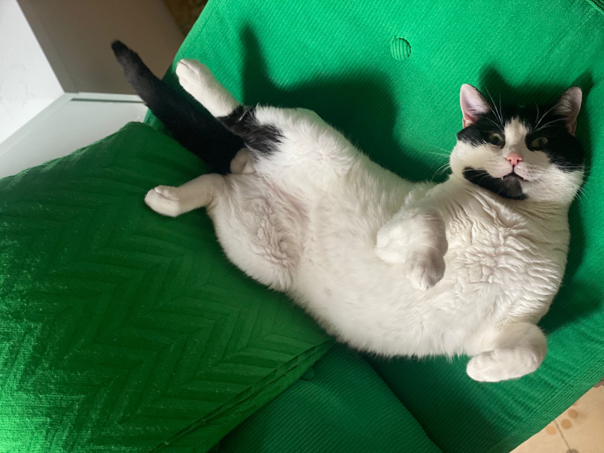 S’adapta molt bé als canvis, és molt xerraire i li encanta el menjar i les xuxes gatunes.No treu mai les urpes ni esgarrapa.